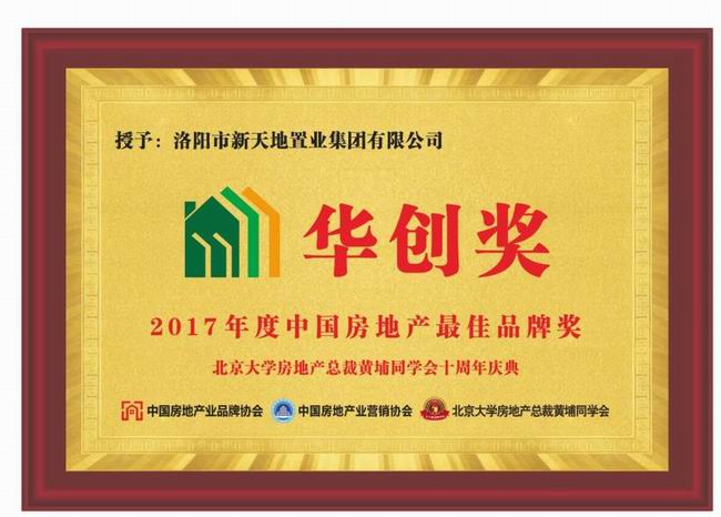 作為洛陽(yáng)地產(chǎn)行業(yè)的領(lǐng)軍人物,新天地集團(tuán)不負(fù)眾望,憑借雄厚的品牌實(shí)力和***產(chǎn)品的成功塑造,以及董事長(zhǎng)張夢(mèng)留的個(gè)人魅力,斬獲“華創(chuàng)獎(jiǎng)?2017年度中國(guó)房地產(chǎn)***佳品牌獎(jiǎng)”和“華創(chuàng)獎(jiǎng)?2017年度中國(guó)房地產(chǎn)***企業(yè)家獎(jiǎng)”雙桂冠。